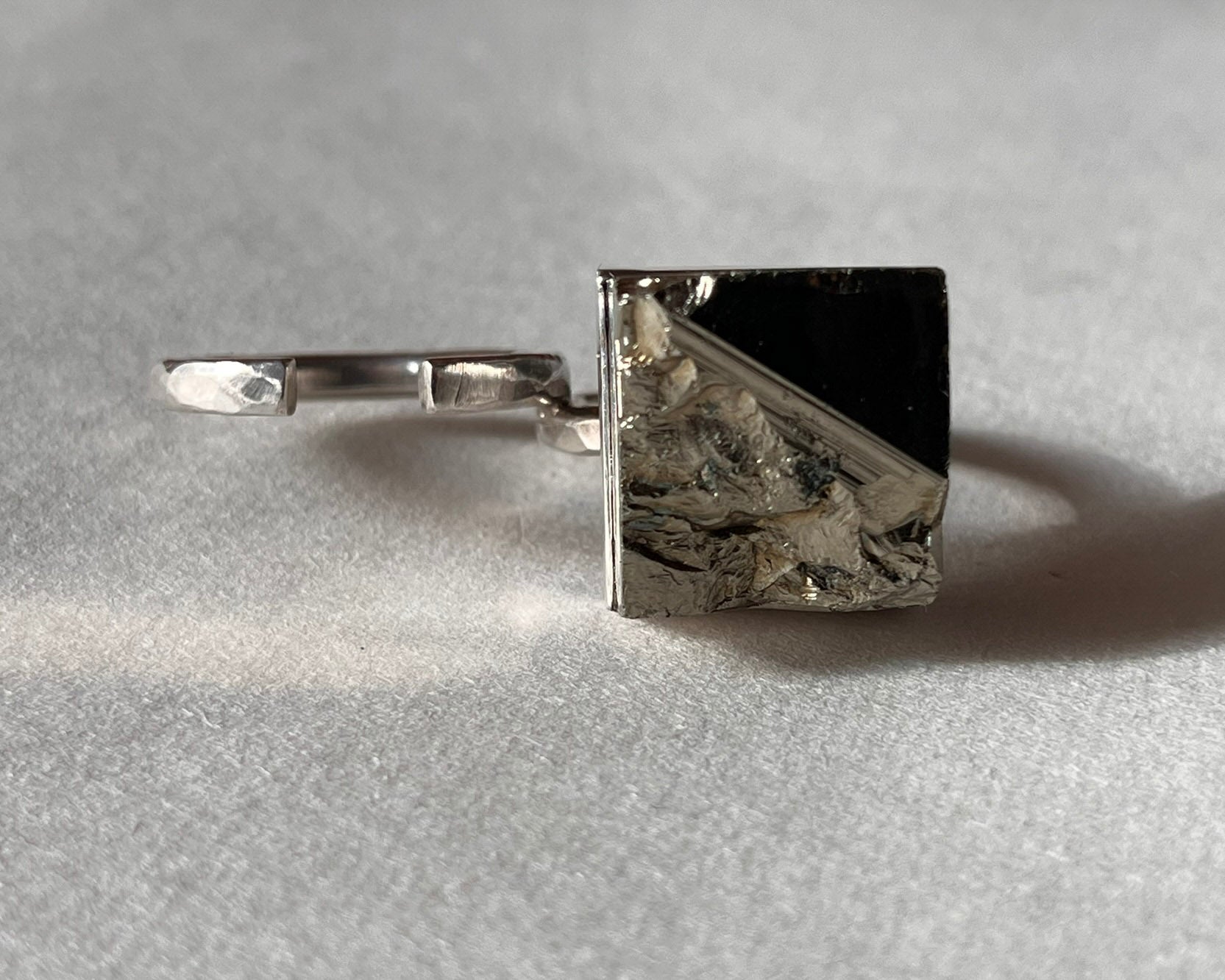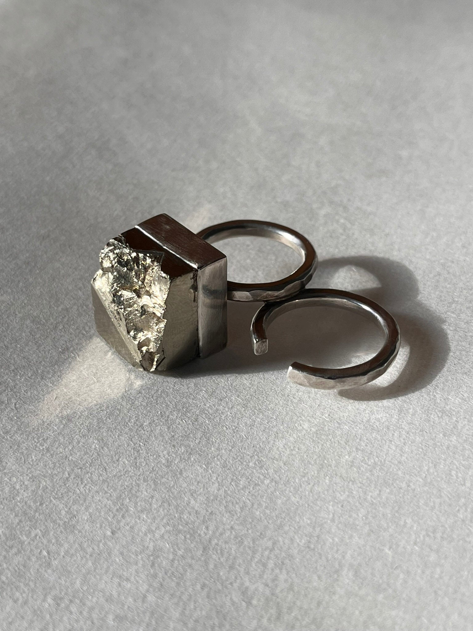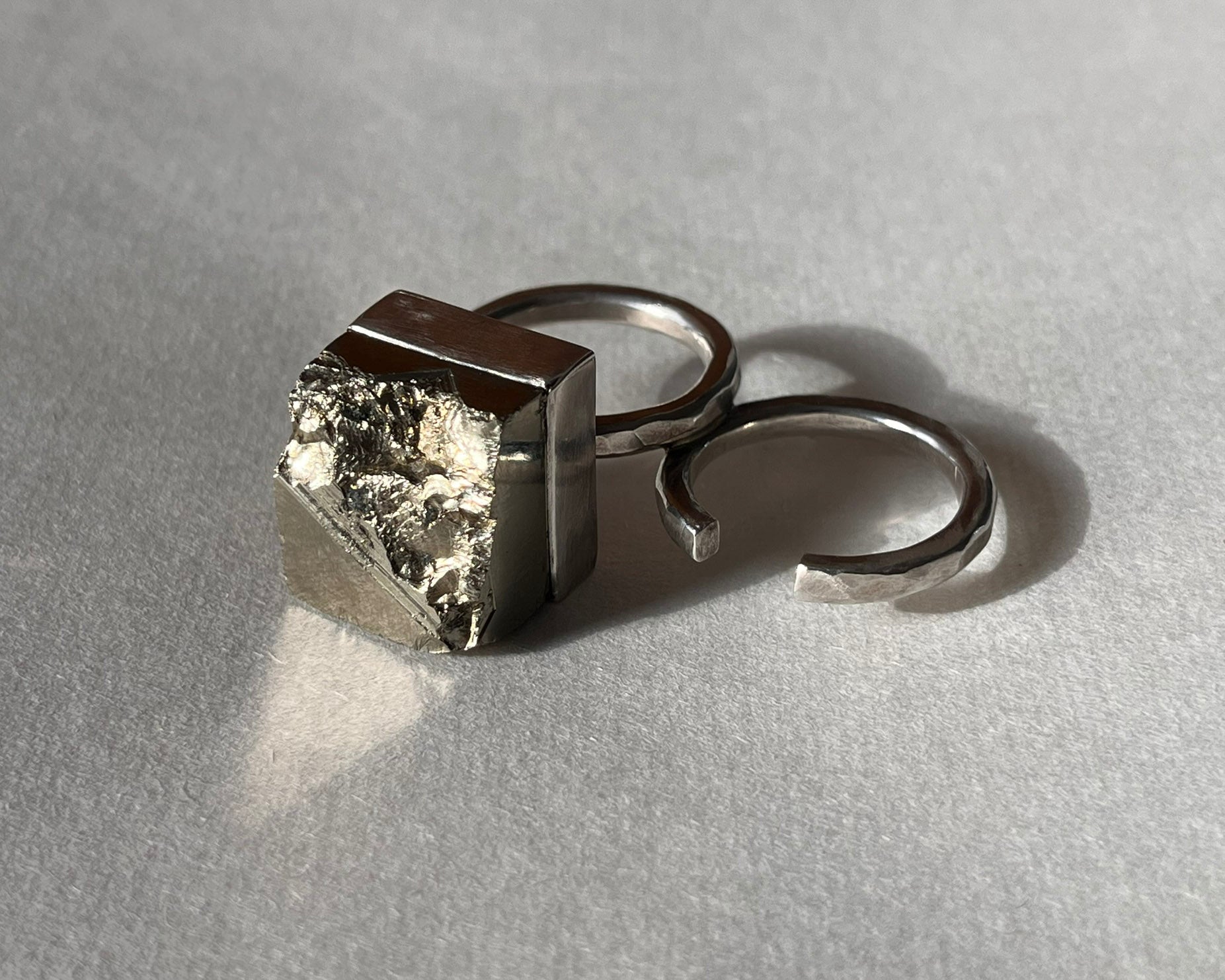 Double ring with a natural Pyrite crystal